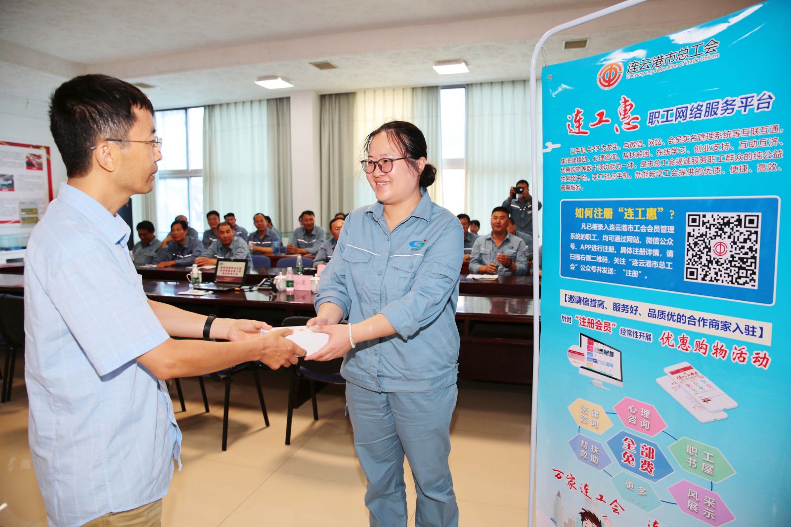 此次調(diào)研,孫月春副主席一行帶來三百余冊圖書贈(zèng)予公司職工書屋,進(jìn)一步豐富了公司職工的業(yè)余文化生活,并向參加連工惠抽獎(jiǎng)活動(dòng)獲獎(jiǎng)的我公司職工伏廣偉頒獎(jiǎng)。連工惠運(yùn)營人員針對(duì)“連工惠”平臺(tái)注冊相關(guān)事宜進(jìn)行了面對(duì)面指導(dǎo),并一一解答了現(xiàn)場參會(huì)人員提出的問題。