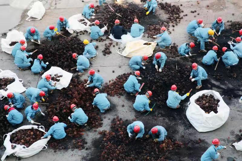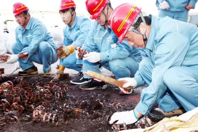 由于清理工作全靠人力完成,崗位人員一邊要維持生產(chǎn),一邊要清理填料,工作量非常大。11月12日下午,公司黨委書記、董事長張衛(wèi)民在調(diào)研重堿車間生產(chǎn)現(xiàn)場時了解到這一情況后,當機立斷,立即組織公司領(lǐng)導及各部門黨員干部義務(wù)勞動,協(xié)助重堿車間完成鮑爾環(huán)填料清理回收工作。