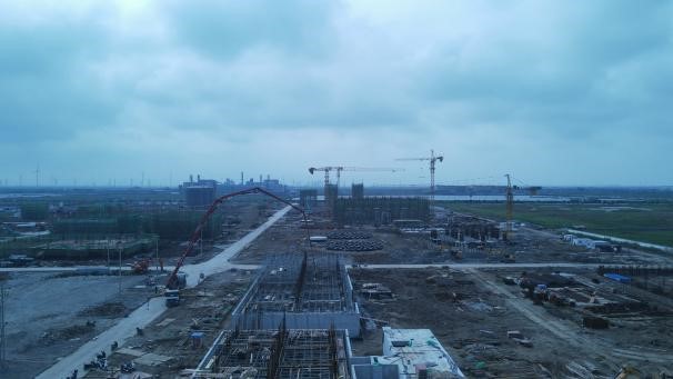 ⑵聯(lián)堿二標(biāo)段611鹽硝車間破樁完成;523結(jié)晶工段框架6~10軸一層梁驗收完成;614真空制鹽循環(huán)水站外排水池土方回填;562聯(lián)堿循環(huán)水站框架西側(cè)池壁驗收完成,水池破樁;524干銨工段7~12軸一層模板支撐架搭設(shè);503變電所3外架搭設(shè),內(nèi)架開始搭設(shè);525包裝及儲運(yùn)8-16軸梁板模板鋪設(shè)、1-7軸內(nèi)架搭設(shè);506機(jī)柜間1一層梁板柱梯澆筑;601變電所2外架搭設(shè)。