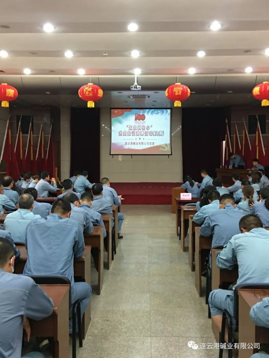 為慶祝中國共產(chǎn)黨成立100周年,激勵公司全體黨員干部更好地學習黨史知識、領悟黨史知識,6月10日,公司成功舉辦“知史踐初心”黨史知識競賽活動決賽,管理五、電儀、銷售、質檢、鹽水制鈣、運輸?shù)攘鶄€支部參加決賽,公司領導班子成員及全體中層干部、分會主席、支部黨員代表觀看比賽。